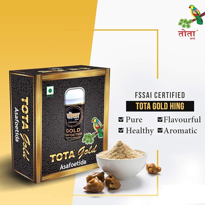 A premium-grade asafoetida known for its pure quality and gluten-free formulation is “Tota Gold Hing.”. Derived from the best resin found in Ferula assafoetida plants, it has a strong, savory scent and adds a unique umami taste to food. Perfect for pickles, dals, and curries, Tota Gold Hing adds a lovely, fragrant note. It’s also great for vegetarian and gluten-free diets. Its finely ground granules make it simple to include in recipes, adding a touch of traditional Indian spice knowledge to every meal.